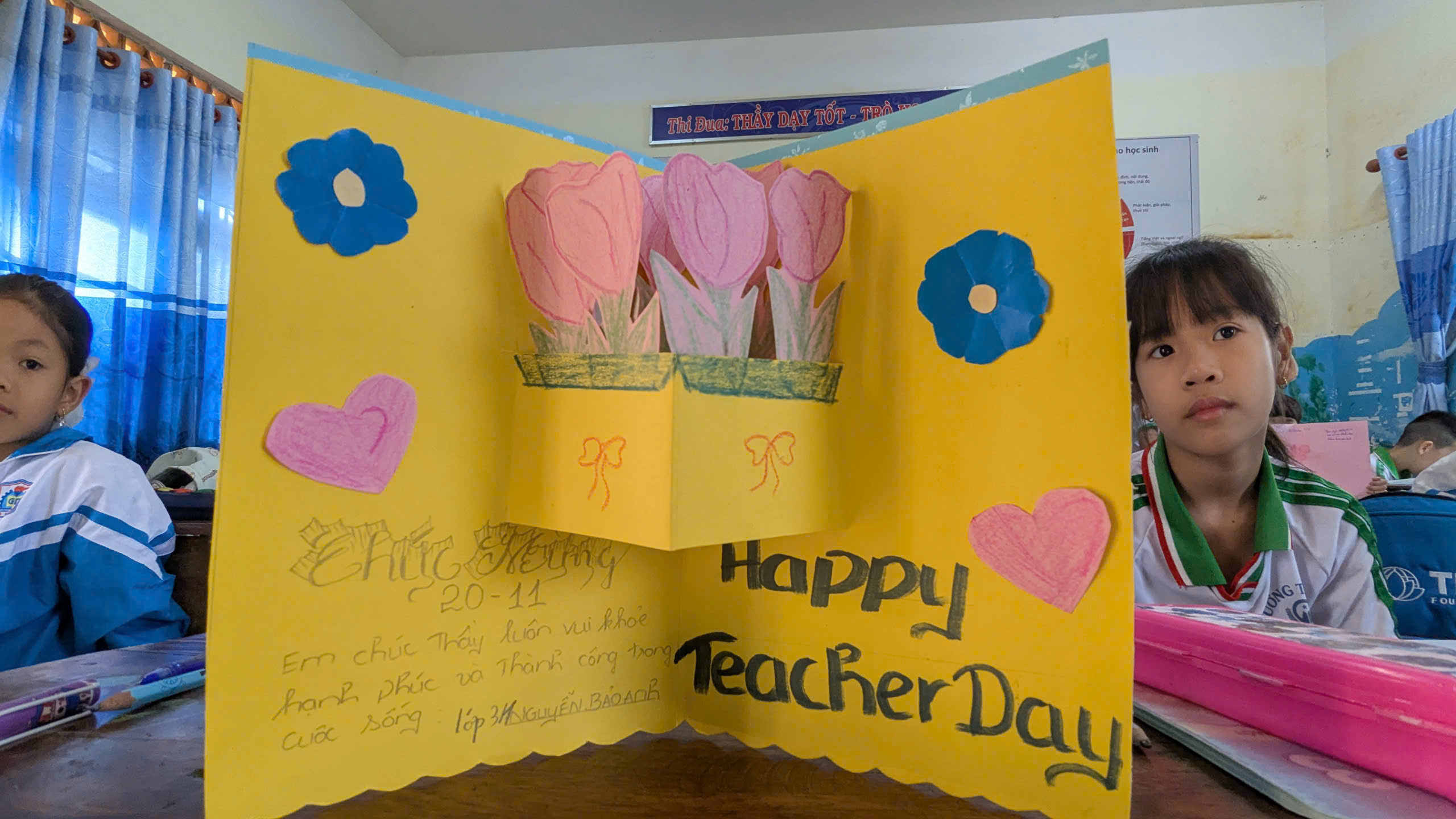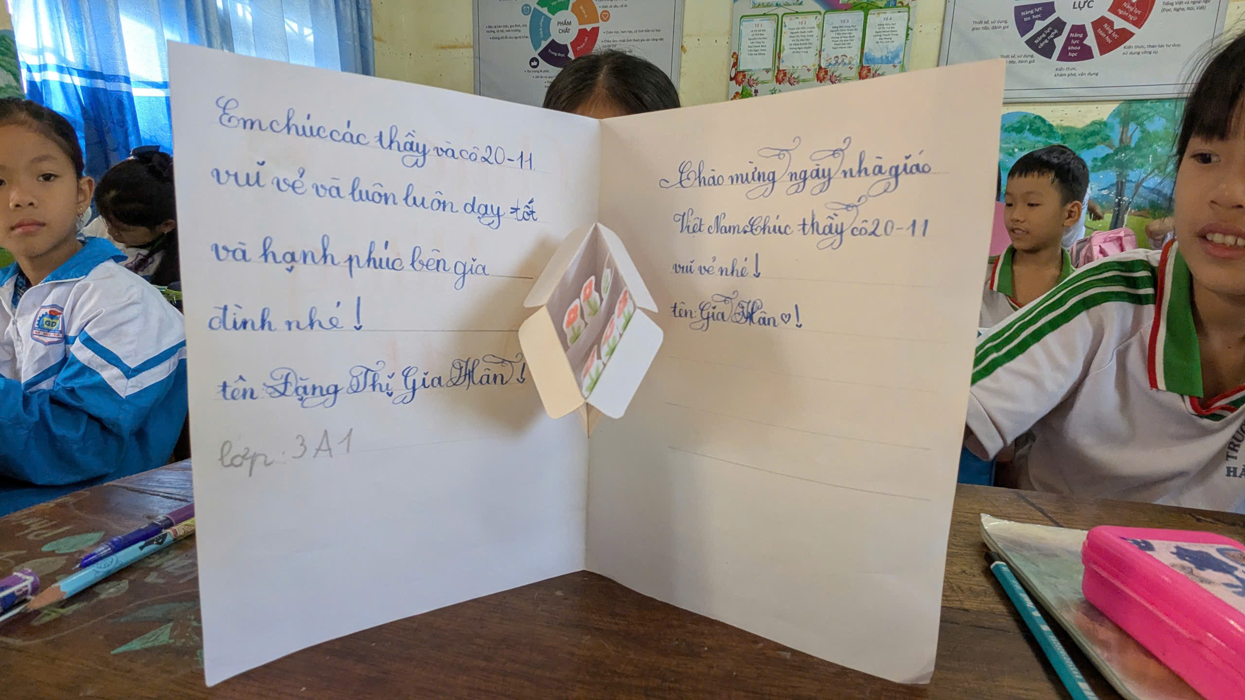 Khối 3 hào hứng tham gia Hội thi Trang trí thiệp chúc mừng Ngày Nhà giáo Việt Nam với nhiều ý tưởng sáng tạo và đầy cảm xúc.